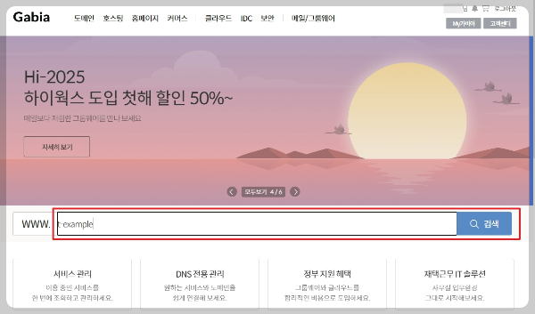 2) 메인화면에서 사용할 도메인을 입력 후 [검색] 버튼을 클릭합니다.