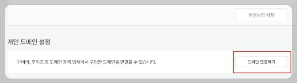 2) 개인 도메인 설정 화면에서 [도메인 연결하기] 버튼을 클릭합니다.