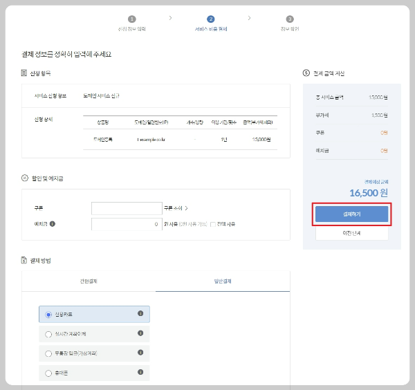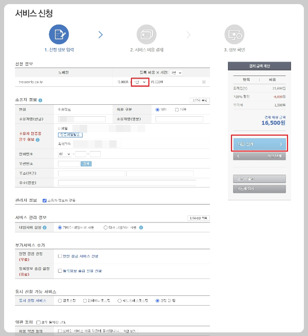 - 사용기간 만료 전 연장 가능하므로 초보자라면 1년을 선택합니다.